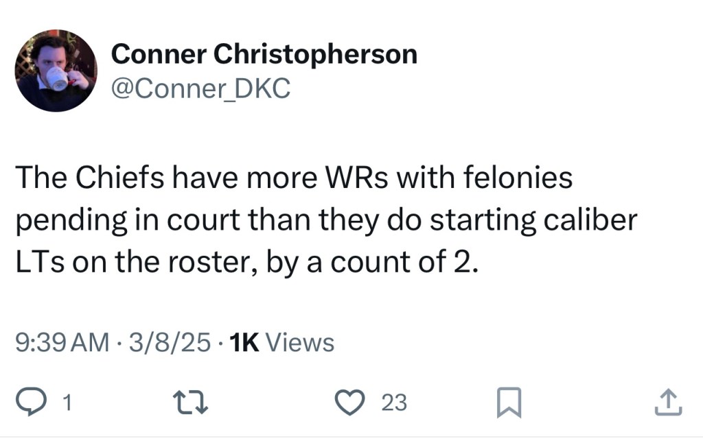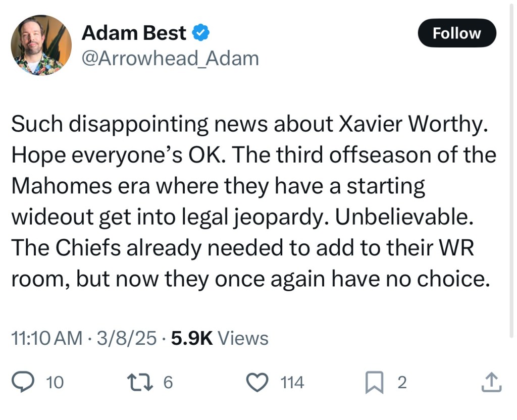 Frustration is mounting in Chiefs Kingdom to say the least. This has continued to be a pattern of behavior inexplicably with the Chief’s wide receivers. First Tyreek Hill, then Rashee Rice, and now Xavier Worthy. I can’t remember the last time the Chiefs had an offseason where no one was in trouble with the law. Chiefs fans are sounding off on Twitter: