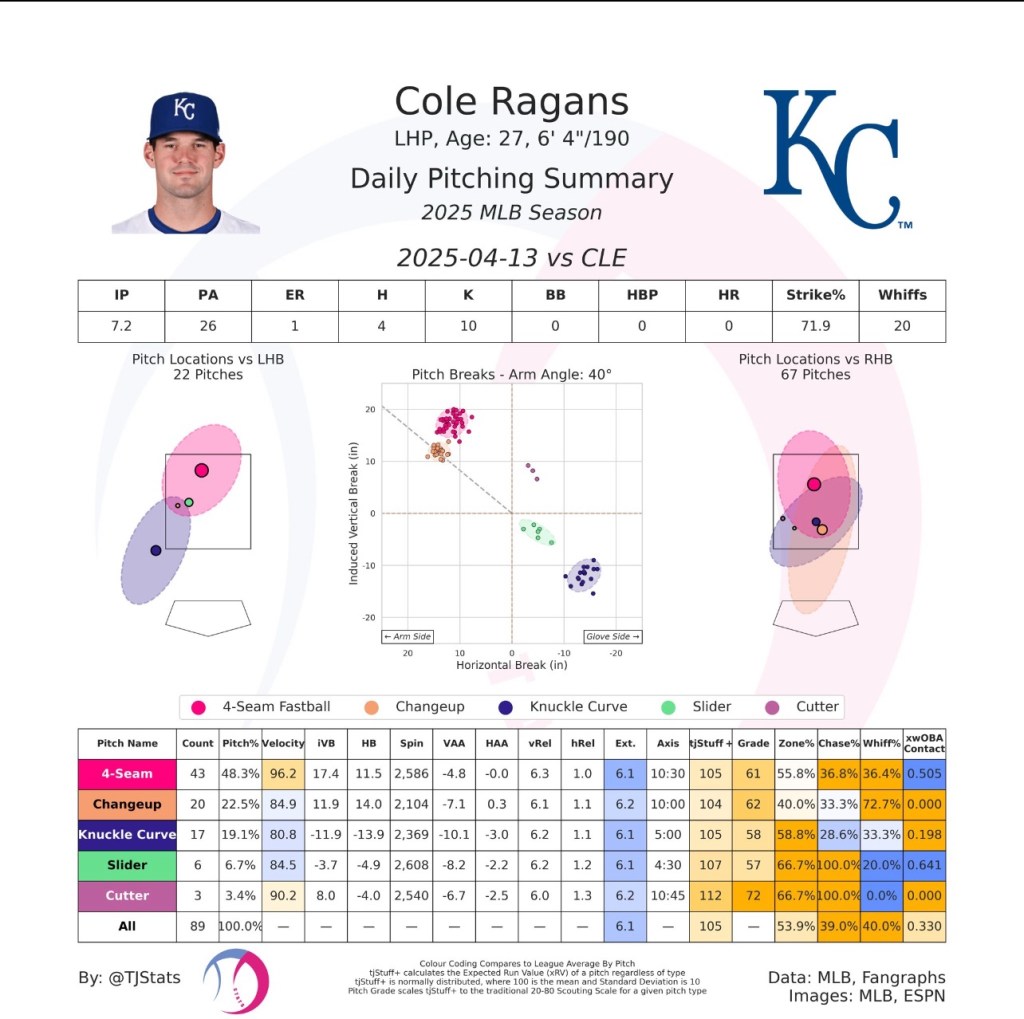 Enter Cole Gatlin Ragans. He took the ball and didn’t flinch a muscle against this stout Guardian lineup until his day was finished in the 8th inning.