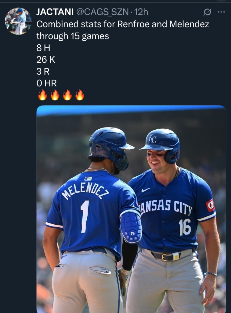 We can be upset about MJ Melendez and Hunter Renfroe until we’re blue in the face. They both punched out a pair of times and looked lost at the plate. I tweeted that Melendez should plead to the MLB to create a designated fielder position because he is not enjoyable to watch trying to hit the baseball.